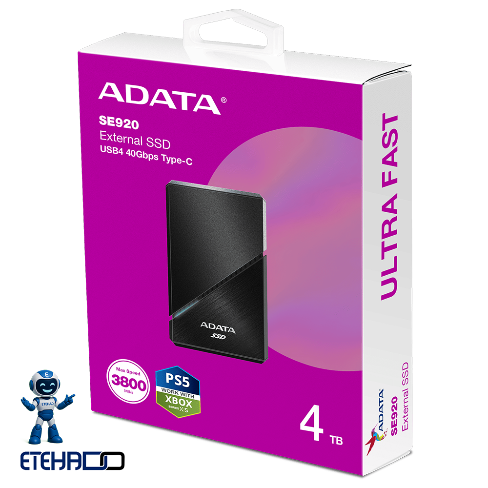 اس اس دی اکسترنال ADATA SE920 با سرعت خواندن و نوشتن فوقالعاده تا 3,800/3,700 مگابایت بر ثانیه، پشتیبانی از USB4 40Gbps Type-C، سیستم خنککننده فعال و طراحی جمعوجور و قابل حمل، یک انتخاب بیرقیب برای گیمرها، تولیدکنندگان محتوا و کاربران حرفهای است. با خرید این محصول از فروشگاه آنلاین تأمین تجارت اتحاد، از گارانتی معتبر، ارسال سریع و تجربهای امن و راحت در ذخیرهسازی دادهها بهرهمند شوید و سرعت، امنیت و کارایی را به حداکثر برسانید.